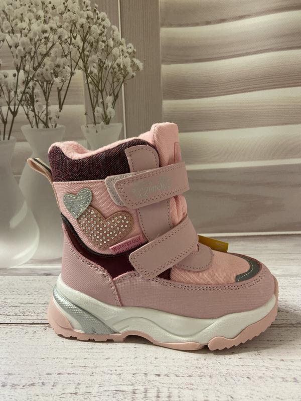 Зимове взуття фірми Tom.m -Виготовлені з якісних матеріалів -Водовідштовхуюче покриття Waterproof -Усередині тепла овчина – ніжки завжди в теплі -Зручна підошва з протектором – не ковзає на снігу -Легке взування завдяки липучкам Розмір 22-14 см