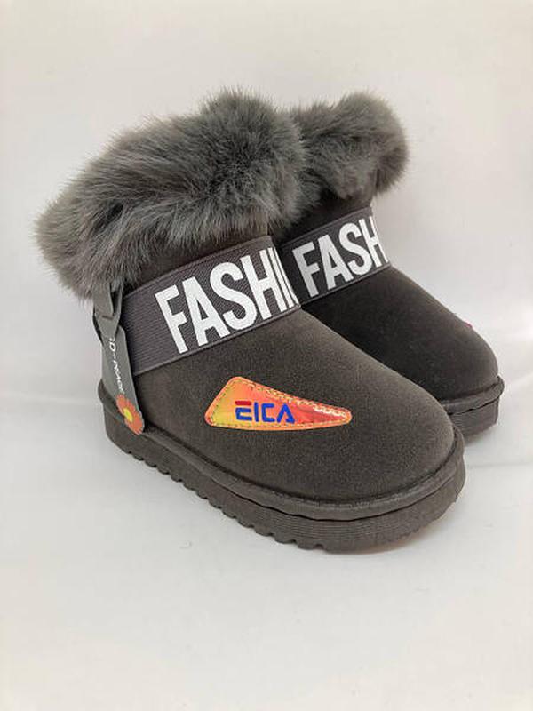Детские модные угги на меху. Материал верха эко замш. Утеплитель-мех [цигейка]. Подошва: ПВХ. Верх голенища-натуральный мех. Высота подошвы 2см. Очень теплые и удобные Размеры: 25р.15,5см. 26р.16см. 27р.16,5см. 28р. 17см.2шт 29р.17,5см. 2шт 30р.18см. 2шт