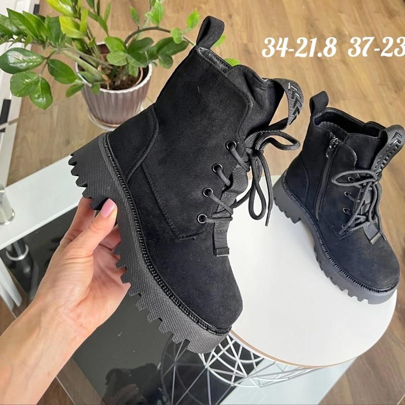 Стильные зимние ботинки 34 размер 21.8 см 37 размер 23.3 см Верх эко замш Внутри густой мех Сбоку присутствует молния На ножке идеально 👉Безопасной оплаты нет. Кнопку КУПИТЬ не жмите, до уточнения деталей 🚚Новая почта, есть наложка с предоплатой 🚛 Укрпочта- +5грн упаковка (укрпочтой наложка немає❗️) По оплате и доставке уточняйте дополнительно, до покупки! Возврата нет, делайте свой выбор обдуманно. Осматривайте товар в отделении, претензии из дома не рассматриваются! Спасибо что дочитали🤗 севаст