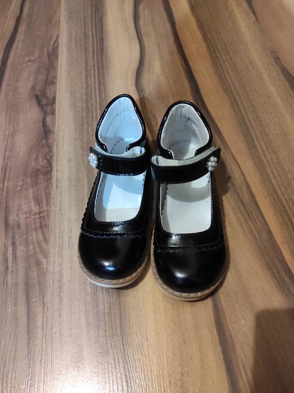 Очень красивые кожаные лакированные туфельки на девочку в размере 29 ( 19.5 см стелька). Каблук Томаса, супинатор, жёсткий задник. Состояние идеальное, одевались один раз на 1 сентября.