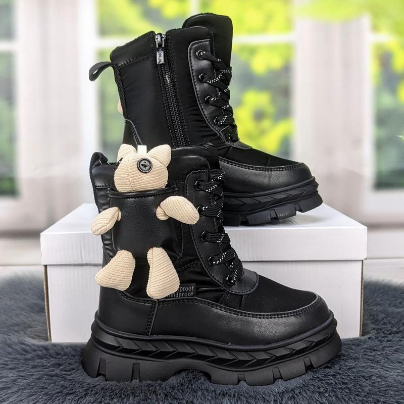 Ботинки дутики зимние детские для девочки черные с зайчиком Том.М 5249 Зимние детские ботинки-дутики черного цвета на меху для девочки. Украшены мягкими зайчиками. Зайчик находится в карманчике, его можно при необходимости достать и постирать Верх - эко кожа + плащевка Подкладка - мех шерстяной Подошва ПВХ. Высота подошвы 3-4 см, высота ботинка от подошвы 13 см Застежка - шнуровка + боковая молния Замер сделан по стельке, обязательно оставляйте запас на теплый носочек, и чтобы обувь была не впритык и не сжимала ножку. Для выбора своего размера, смотрите размерную сетку на данную модель: 28р - 18 см 29р - 18,5 см 30р - 19 см 31р - 20 см 32р - 20,5 см 33р - 21 см Перед оформлением заказа уточняйте наличие размера!!! Замеры стельки делаем сами, вручную. Отправка Новой или Укрпочтой. Оплата осуществляется на карту Приват банка, или наложенным платежом, с минимальной предоплатой на доставку. Или же можете воспользоваться безопасной оплатой через Шафу.