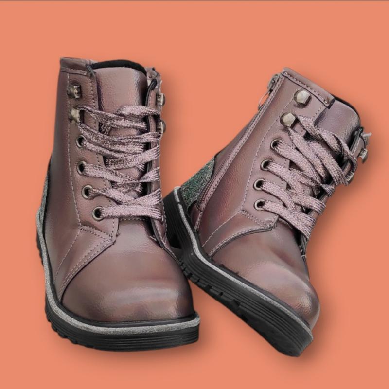 Детские зимние ботинки для девочки пудра шоколад коричневые гибкие лёгкие блестящие маломе...