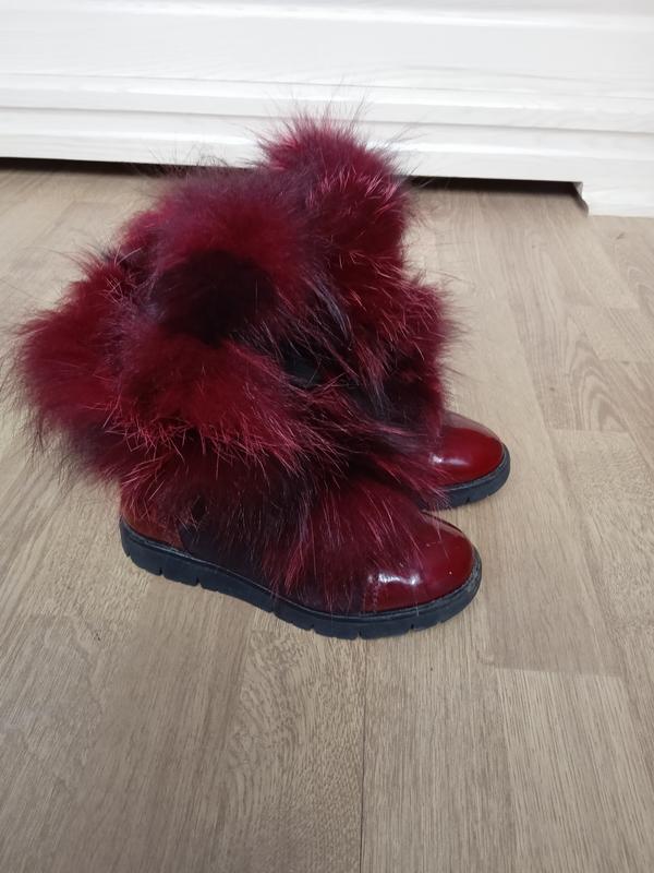 в идеальном состоянии, как новые, натуральный мех, замш + лак. мега круто смотрят на ножцы. Изюминка производитель. стелька 19 см.если точно 18,5, потому что они теплые.