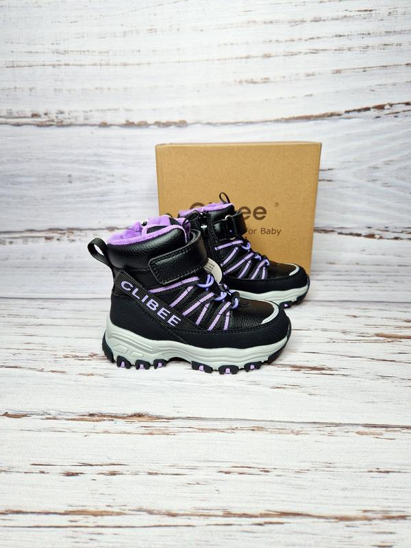 Зимові черевики фірми Clibee Сезон: зима Колір: чорний Матеріал внутрішній: густе змішане хутро 60% вовна/овчина Матеріал зовнішній: якісна щільна екошкіра Стильні та неймовірно яскраві черевики, м'які, гнучкі. Дуже стильно виглядають на ніжці За об `єму регулюються шнурками та липучкою, для зручності збоку присутня блискавка, носик практично захищений від збивання Розміри з 26 по 31 по устілці повністю: 26р. по устілці 16,8 см 27р. по устілці 17,5 см продані 28р. по устілці 18,0 см 29р. по устілці 18,8 см ПРОДАНІ 30р. по устілці 19,5 см продані 31р. по устілці 20,0 см продані