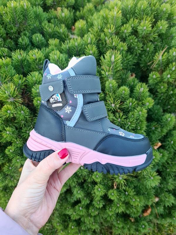 Зимние ботинки фирмы Bessky Сезон: зима Материал внутренний: густой теплый искусственный мех Материал внешний: качественная плотная экокожа Цвет: серый Стильные и невероятно яркие ботинки, мягкие, гибкие. Очень стильно смотрятся на ножке По объему регулируются липучками и молнией, есть защитный носок. Размеры с 28 по 33 по стельке внутри: 28р. по стельке 18,0 см 29р. по стельке 18,5 см 30р. по стельке 19,5 см ПРОДАНИ