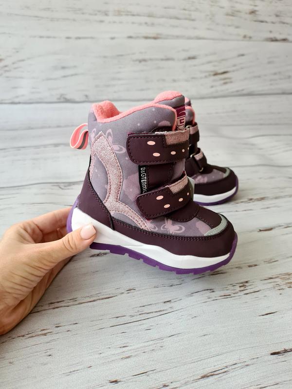 Термоботинки B&G-Termo для девочек Материал внутренний: шерсть натуральная, обувная бака и флис + термо стелька (сохраняет тепло при -30С) Материал внешний: водоотталкивающий текстиль по технологии Waterstop + искусственная износостойкая кожа (PU). Что такое мембрана BG-QweenTEX? Это: влагонепроницаемость + термоэффект + температурный режим от +10°С до -30°С. Термо стелька имеет три слоя: 1.Антиаллергенный материал, содержащий натуральную шерсть, поддерживает тепло и создает комфорт при ходьбе. 2. Специальный фольгированный внутренний слой препятствует охлаждению, отражает тепло ступни внутрь. 3. Специальный перфорированный вискозный слой поглощает влагу и позволяет стопе свободно дышать. Подошва в термокрасках B&G-Termo: обеспечивает отличное сцепление с любыми видами поверхности + - обладает высокой стойкостью к деформациям, низким температурам и плохой погоде. Размеры с 23 по 28 по стельке полностью: 23р. по стельке 14,8 см 23р. по стельке 14,8 см 24р. по стельке 15,5 см