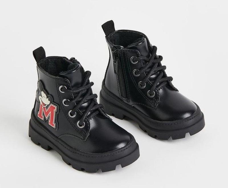 Стильные ботинки для девочки от H&M. Внутри с микроплюшевой подкладкой и стелькой. С красивой шнуровкой спереди. Застежка - молния сбоку. Сезонность: осень, весна.