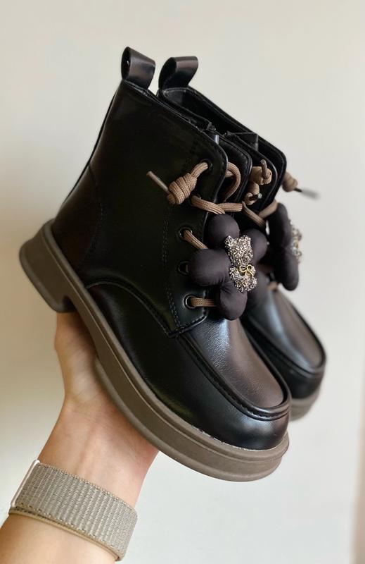 Стильные деми ботинки для девочек Верх эко кожа Внутри флис. Стелька кожаная с супинатором Фиксация на шнуровке. Сбоку есть замочек. Очень легкие, мягкие и удобные. Подойдут под любой образ Украшение можно снять 37-23,0 см 955 грн