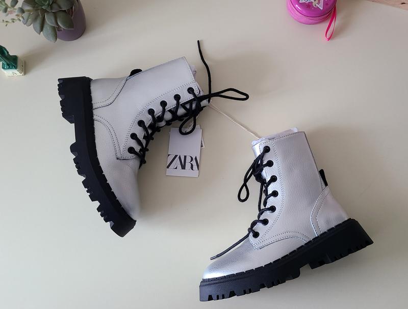 стильные ботинки на весну / осень от бренда Zara на шнуровках + молния оригинал, новые размеры в наличии 31 (19.6 см), 32 (20,3 см) красиво сверкают в солнечную погоду