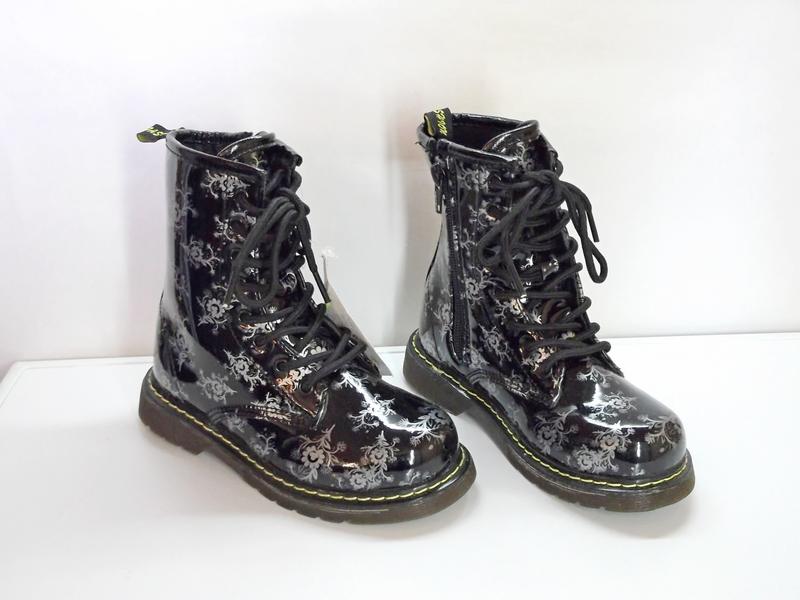 Легкие ботиночки на осень-весну. р.28 по внутренней стельке -17,5см, без запасу р.32 по внутренней стельке -20см, без запасу Застежка -молния+шнуровка Верх -полностью лак Внутри -текстиль Подошва полиуретан, не скользящая.