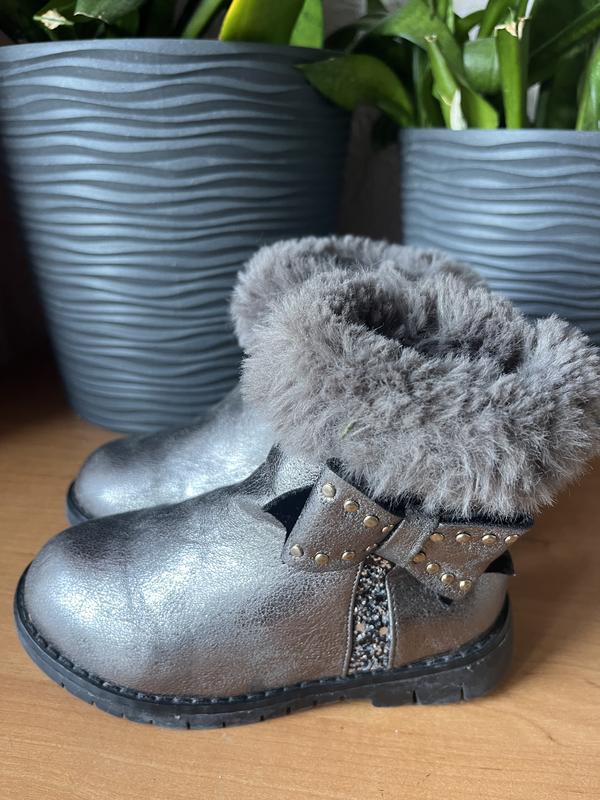 Черевики для дівчинки прикрашені хутром і бантиком Стан ідеальний Розмір 26 Устілку 16,5 см