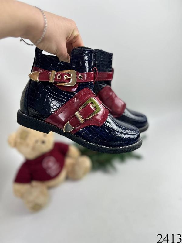 НОВИНКА Код: 2413 Демисезонные ботинки на флисе для девочки! Яскрава лакована модель. Размер: 34-37. Производство: Турция. Каблук: 2 см. Полномер. Эко кожа (лак). Цвет: Синий. 34 - 21.5 см 35 - 22.5 см 36 - 23 см 37 - 23.5 см