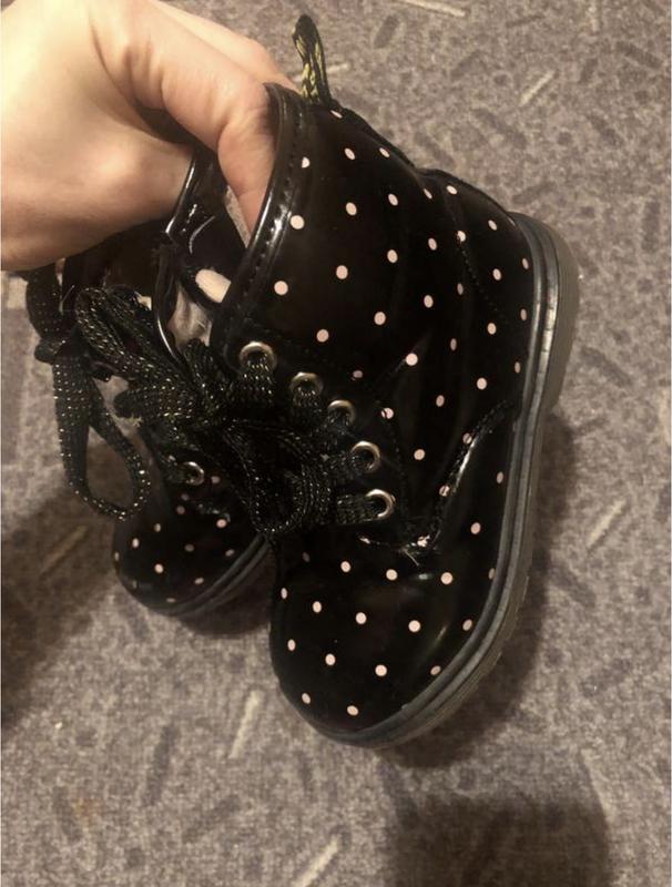 Красивые, удобные, не промокаемые. Стелька 15,5 см. Из недостатков - едва заметный слегка затертый носок.