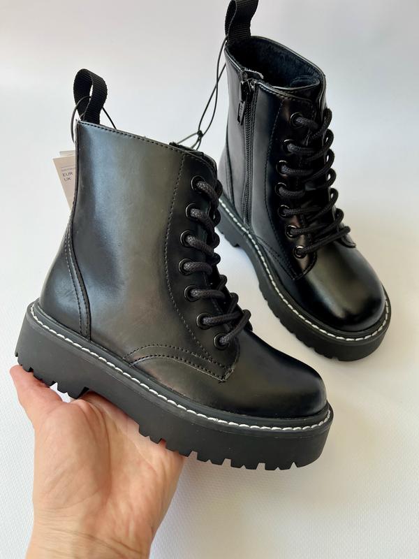 Нові черевики від бренду H&M. Мають легке утеплення. Для зручного взування мають бічну застібку-блискавку. Підйом регулюється шнурівкою. Підошва тракторна. Дуже стильні для дівчинки Розміри - 26 27 28 - 33 - 26 - 1 000 грн продано 27 - устілка 17.4 см 1100 грн 28 - устілка 18 см 1150 грн продано 29 розмір - устілка 19 см. 1 200 грн продано 32 - 21 см продан 33 - 1300 грн, устілка фактична 21.3-21.5 см продано