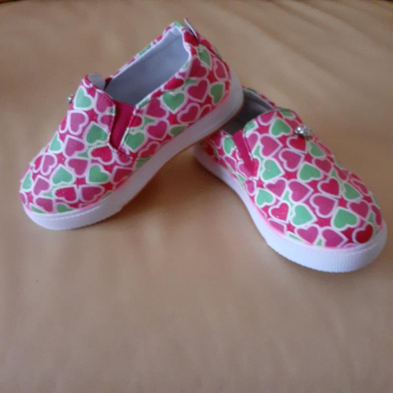 Новi черевики/мокасини або як капцi в садок чи дома. Розмiр не сказано. Фактична довжина устiлки 15,5см. Верх яскрава та мяка екошкiра. В серединi тканина. Устiлки з екошкiри, супiнатор. Нога дитини не потiэ. На худеньку нiжку НЕ ПІДІЙДУТЬ. Средня зі шкарпеткою, а краще обэмна чи широка.