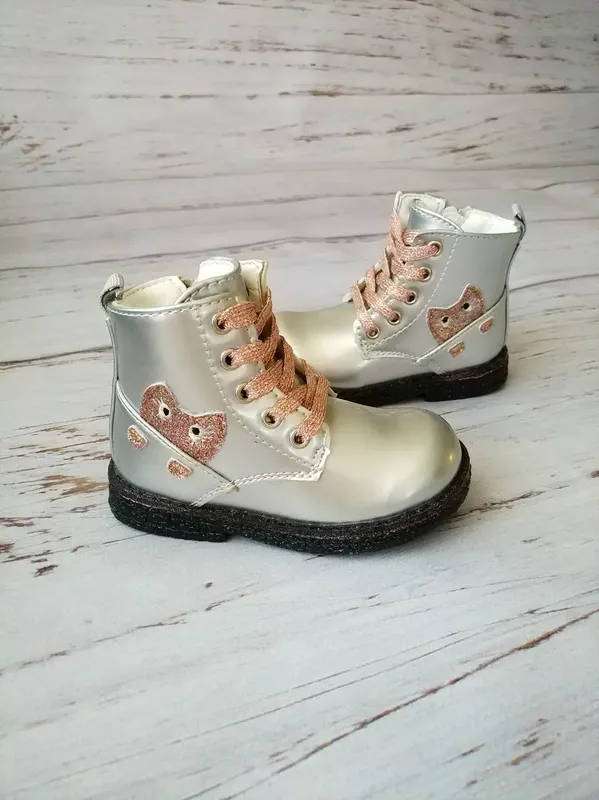 Демисезонные ботинки для девочек С.Луч. Сезон: осень-весна Цвет: серебро Материал внутренний: стелька кожаная ортопедическая с супинатором Материал внешний: высококачественная мягкая искусственная кожа (лакированная) Стильные и невероятно яркие ботинки для настоящих маленьких модниц Подойдут на высокий подъем и стандартную ножку. По объему стопы регулируются с помощью шнуровки, дополнительно сбоку есть молния. На ножке смотрятся красиво и аккуратно. Размер по стельке внутри: 22р. по стельке 14,0 см 23р. по стельке 14,5 см