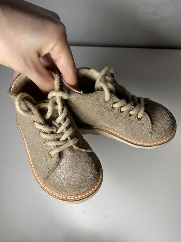 Стильные ботиночки осень-весна Состояние новых (походили максимум 5 раз) Размер не указан (около 22-23) Замеры: стелька 14 см, подошва 16 см