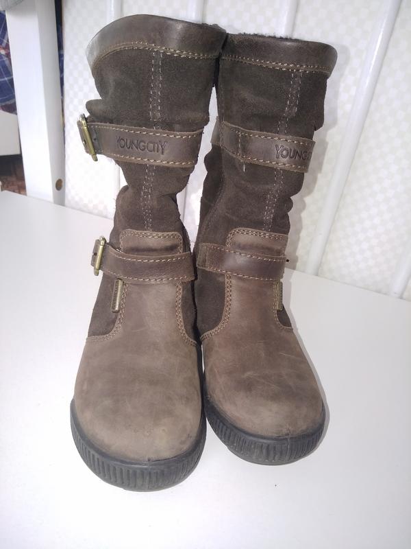 Сапожки демисезонные, очень удобные. Натуральная кожа и замша. Водонепроницаемые, внутри флис. Есть небольшие потёртости. Привезены из Германии, очень качественные, неубиваемые.