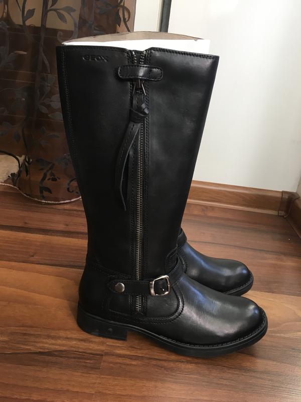 Кожаные сапоги демисезонные. Длина стельки 23 см. Ширина 7.5см. Высота сапог 32 см