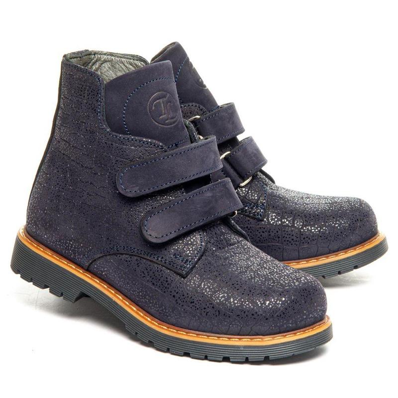 Theo Leo 1371 - комфортні демісезонні черевики з натуральної шкіри нубук. Виконані в синьому кольорі з блискучим напиленням. Модель на двох липучках для швидкого та комфортного процесу взування. Модель виготовлена з врахуванням усіх важливих ортопедичних складових дитячого взуття: каблук Томаса, жорсткий задник, супінатор та анатомічно правильна устілка. Підкладка - фліс, устілка з супінатором - натуральна шкіра. Устілка знімна, завдяки чому її можна замінити на лікувальну або індивідуальну. Підошва - термопластична гума, міцна, не ковзає, добре амортизує, досить гнучка, зносостійка. Таблиця розмірів: Заміри вказані від краю до краю устілки. - 28 р. - 18,3 см. - 29 р. - 19,3 см. - 30 р. - 19,7 см. - 31 р. - 20,5 см. - 32 р. - 21,2 см. - 33 р. - 21,8 см. - 34 р. - 22,3 см. - 35 р. - 22,8 см. - 36 р. - 23,5 см.