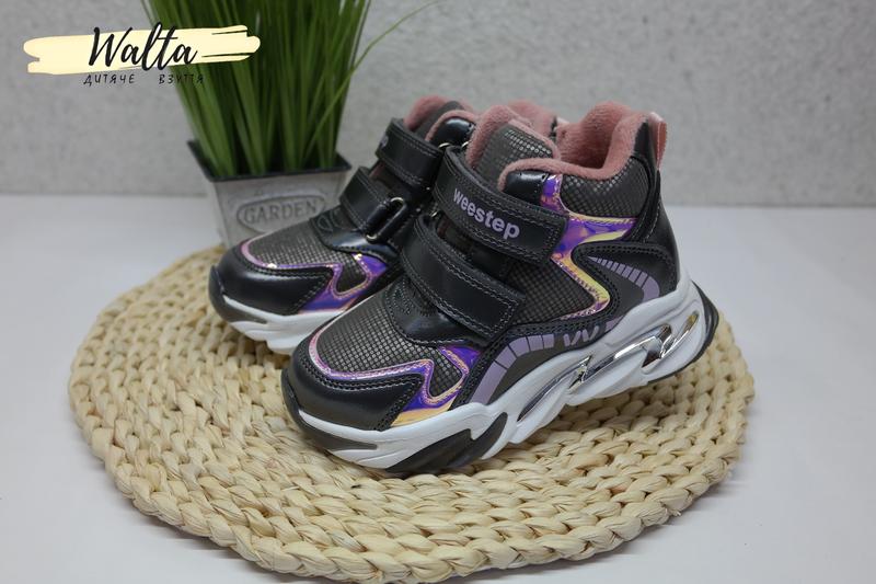 размерная сетка: замер по вынимающейся стельке 27 - стелька 17,7см 32 - стелька 20,5-20,7см Оригинальные стильные ботинки демисезонные на байке от фирмы Weestep для девочек. В середине мягкая байка. На липучке + замочек сбоку. Удобные. Цвет серебряный с розовым голограмма, подошва белая. Материал середина: кожа + байка Материал верха: комбинированная кожа стелька: текстильная анатомическая + байка Индивидуальная упаковка: коробка Пересылает укр по почте, новой по почте по договоренности.