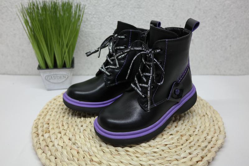 28 35р 17,3 22,2см том.м деми ботинки ботинки девочке с утеплением черные с фиолетовым в ш...