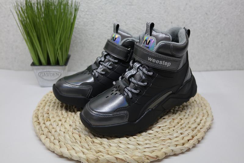 размерная сетка: замер по вынимающейся стельке 36 - стелька 23,5см Оригинальные стильные ботинки демисезонные на байке от фирмы Weestep для девочек. В середине мягкая байка. На липучке + замочек сбоку +шнуровка-обманка. Удобные. Цвет черный с серым. Материал середина: кожа + байка Материал верха: комбинированная кожа стелька: текстильная анатомическая + байка Индивидуальная упаковка: коробка Пересылает укр по почте, новой по почте по договоренности.