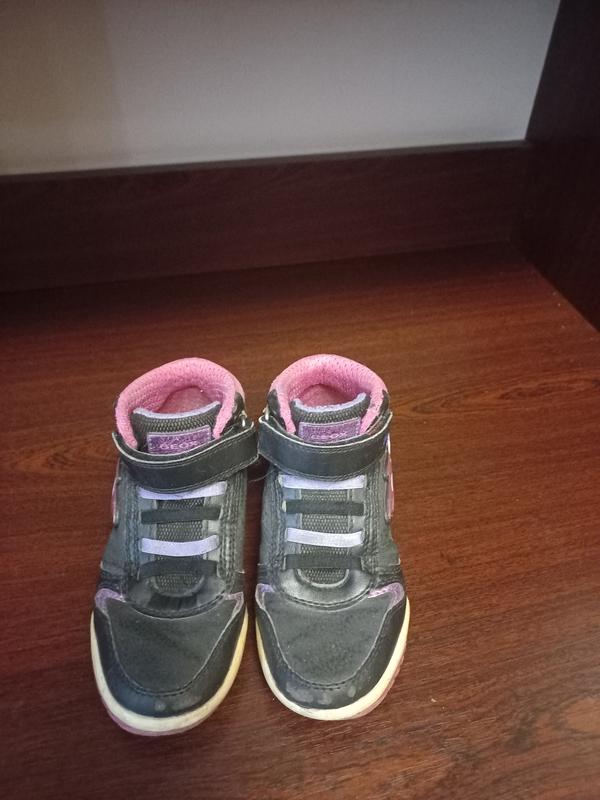Красивые ботиночки на девочку. Размер 27 по стельке 17,5 см. Состояние отличное везде кроме последнего фото, но при использовании не заметно вообще. Липучки работают отлично. Подошва светится на двух ботиночках на фото видно очень красиво. Товар отправляю Новой и Укрпочтой.