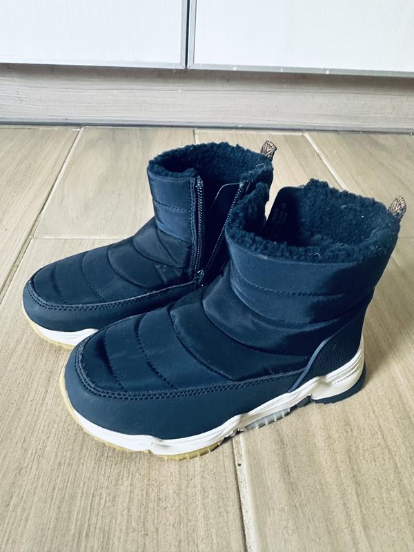 Сапожки демисезон, теплая зима, имеют небольшое утепление, внешняя ткань не промокает, высокая подошва, на замок. Можно как мальчику так и девочке