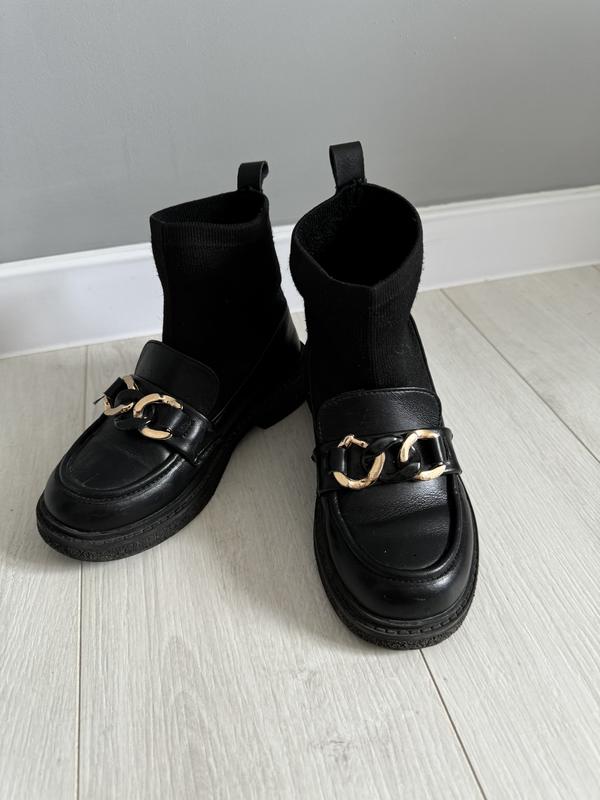 Надзвичайно круті лофери Колір чорний Зручно взуваються Мʼякі та гнучкі Верх еко шкіра, Середина утеплена легким флісом Підошва легка , не ковзка На ніжці виглядають ідеально 33 розмір по стельці 20,5