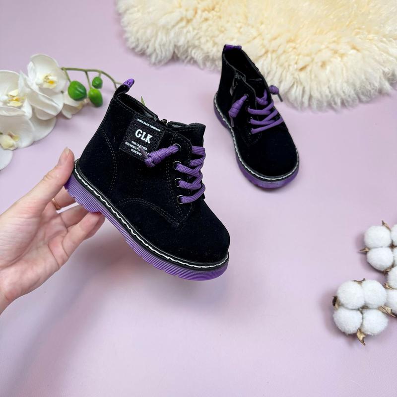 💕Ботинки GLK черные.Верх - замш. Подошва - ПВХ, стелька - кожа, супинатор.Утепленные флисом. Застежка замочек, шнуровка. 📐Замеры: 22 - 14 23 - 14,4 24 - 14,8 25 - 15,3
