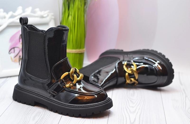 Самая стильная новинка этого сезона с трендовой цепочкой. Неперевершений дизайн. Внешне - качественная эко-лак Внутри утеплены флисом. Стелька кожаная с супинатором. Сбоку на замочке. адамчик НАЯВНОСТЬ 32 размер - 20 см