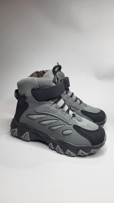 Зручні,легенькі та стильні зимові кросівки для хлопчика. Колір: сірий. Штучна еко-шкіра. Носочок захищений. Є липучка, шнурівка, стильний язичок та позаду тримач- для зручності візування. Не низькі, а які теплі... 33p - 21 35p - 22.5 (2) 36p - 23 Ціна: 1110 грн Гарний варіант на зиму.