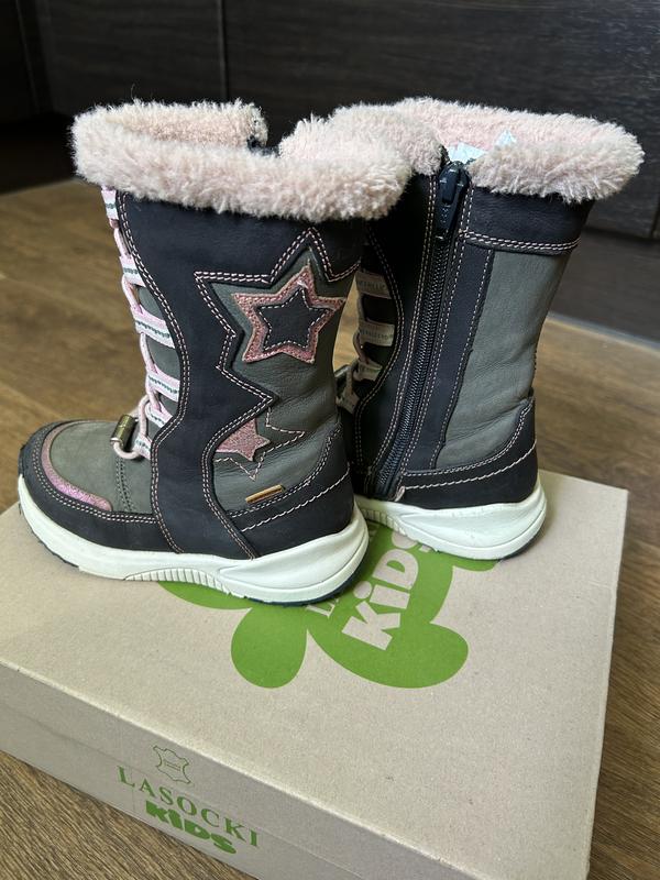 Шкіряні на овчині чобітки. Дуже легенькі і теплі. Цигейка не збита. Довжина устілки десь 17 см.