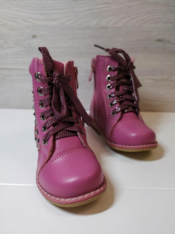 К Вашему вниманию шикарные ортопедические ботиночки для юных модниц ТМ Шалунишка. Серия ортопед- очень правильная обувка для Ваших деток. Модель подходит на любой подьем и на любую ножку- регулируется шнурком, потом можно пользоваться змейкой. Застежка шнуровка, липучка и змейка( сбоку). Верх комбинированный- кожа(носок. пятка липучки- вся малиновая часть), сиреневые боковые вставки-качественный кожзам. Внутри утеплены плюшем, стелька плющевая с супинатором.( на позднюю осень) Каблук Томаса, жесткий задник внизу и к верху мягкий. Очень легкие, удобные , отличные ортопедические ботиночки. Размеры 24-29 замеры стелек ( мои) 24 - 15,5 см 25 - 16 см-- ПРОДАН 26 - 16,7 см - 27 - 17,5 см