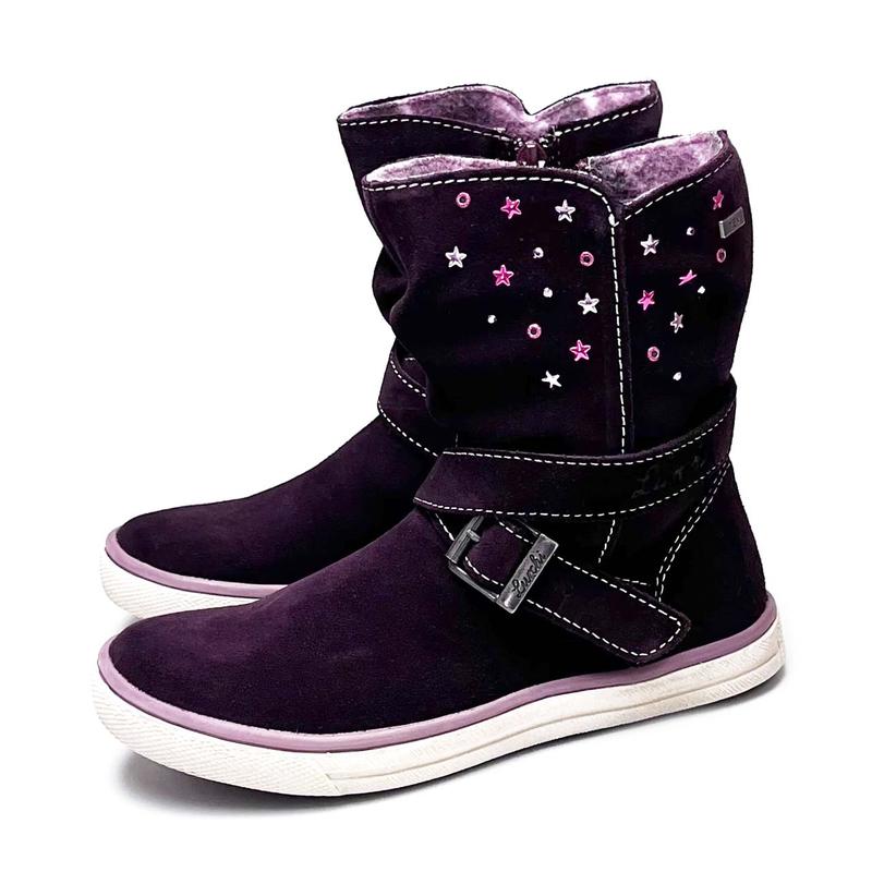 Ботинки для девочки Lurchi by Salamander (Германия) выполнены из натуральной кожи / замши, внутри уютная флисовая подкладка и войлочная анатомическая стелька. Ботинки оснащены Tex-мембраной (дышащая, ветро- и водонепроницаемая), не пропускает воду и при этом отводит лишнюю влагу наружу сохраняя ножки всегда в сухости и тепле. Удобная система фиксации в виде боковой молнии позволит без труда быстро одевать и снимать обувь. ________________________________________ - верх: натуральная кожа / замша - Tex-мембрана (дышащая, ветро- и водонепроницаемая) - мягкая уютная флисовая подкладка - войлочная анатомическая стелька - фиксация: боковая молния-застежка - цвет: фиолетовый - сезон: осень / евро зима EUR 30, длина стельки 20 см ________________________________________