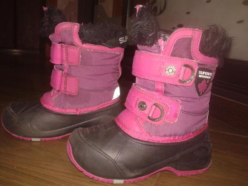 Сапоги сноубутсы SuperFit Канада , размер указан 8 , по стельке 16 см. Высота сапожка от пола - 18 см. Сапожки очень теплые и легкие . Эта обувь разработана для суровых зимних условий и с легкостью выдерживает морозы до - 32 градусов . Конструкция термовкладышей “ТРОЙНАЯ ПЛОТНОСТЬ ИЗОЛЯЦИИ” Все вкладыши обуви SuperFit создаются из трех слоев, согласованных по свойствам для лучшего результата. Полипропилен – материал ближайший к ноге. Обладает хорошими термоизолирующими характеристиками, но его главная работа - отводить влагу от кожи, оберегая ногу от холодного и липкого конденсата, во внешние слои вкладыша. Смесовый войлок, содержащий 100% - шерсть и пропилен, образует средний слой, дышащий вместе с Вашим телом. Большинство тепла вашего тела задерживается здесь. Тонкие воздушные кармашки, образуемые войлочными волокнами, сохраняют теплый воздух вокруг ноги, изолируя его от окружающей среды. Полипропиленовые включения проводят наружу скапливающийся конденсат. RADIANTEXâ - пористая термическая фольга. Представляет собой металлизированную нейлоновую пленку. Этот слой активно выделяет влагу, служит барьером на пути холодного воздуха извне, одновременно отражая тепло обратно по направлению к ноге. КАЛОША сапожка сделана из синтетического каучука , очень легкая , не потрескается и не полопается при любом морозе , не ссохнется со временем . Тёпленькие, абсолютно непромокаемые и очень удобные на ножке. Зимняя обувь изготавливается по запатентованному методу , которая создаёт «климат» внутри обуви, что позволяет обуви быть исключительно теплой, водонепроницаемой и дышащей. пропускает воздух наружу, но не пропускает внутрь воду и ветер, сохраняя ноги сухими и теплыми. Нюансы есть,указала на 4 и 5 фото.Ткань приклеивала,но находится под лейбой сзади и по-этому не видно.