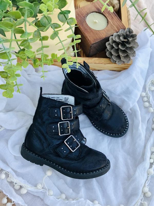 Ботинки F&F чёрные деми демисезонные для девочки. На липучках, крепкие. Размер указан 8/26. Стелька 16 см (от края до края). Материал верха - текстиль с напылением блеска. Состояние на фото, без видимых дефектов.