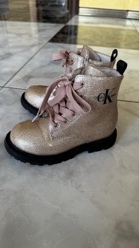 Осенние (весенние) ботиночки на девочку от Calvin Klein, оригинал Очень стильные и красивые, подойдут под разные образы Сбоку есть молния, что очень удобно Высокая подошва но она гибкая и сами ботиночки легкие и удобные Блестки сверху залакованные, поэтому они очень практичны и подойдут на дождливую погоду так как верхний материал не промокает