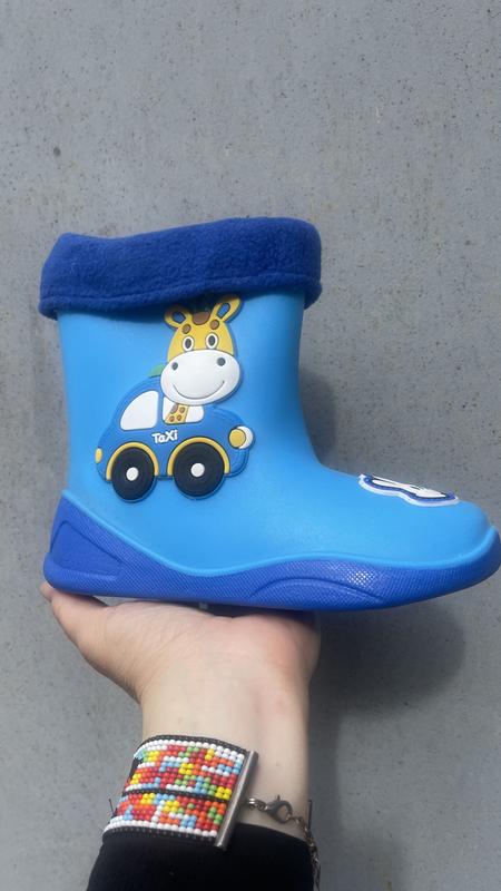 Яркие мягкие резиновые сапожки жираф с теплой вставкой 26-30 размер голубые