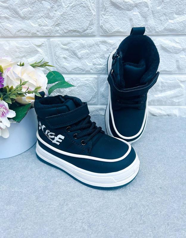 К.1554 Суперовые демисезонные ботиночки Clibee, унисекс, черные, верх эко-кожа, в середине на флисе, регулируются замочком и липучкой, очень мягкие и удобные. 28р стелька 17см 31р стелька 18,7см
