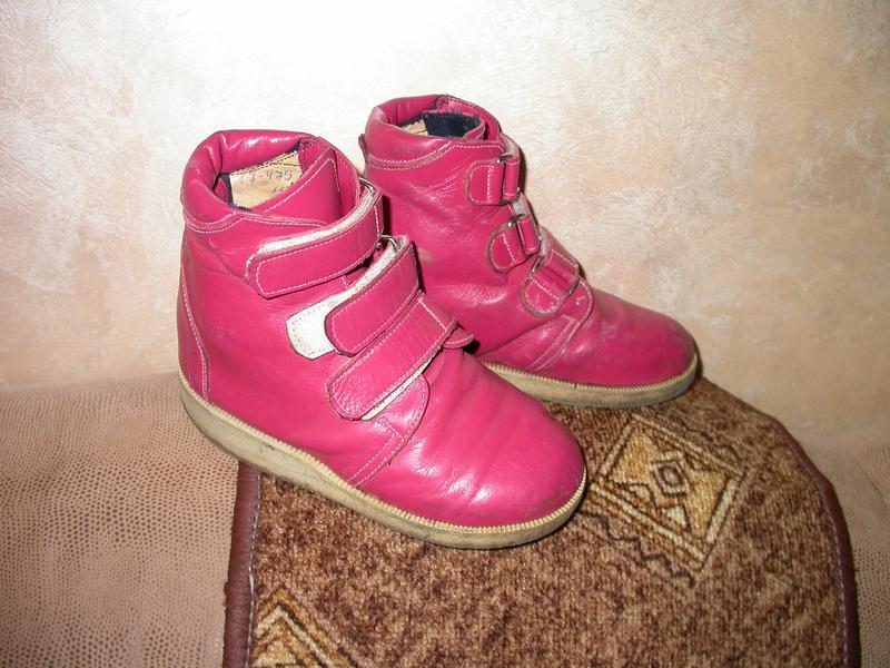 Демисезонные кожаные ботинки-ортопеды на девочку. Стелька 19см. Шилы по заказу. Носилы под индивидуальную цеп, в ботинках есть супинатор+задник со ставкой из гипса. Липучки в идеальном состоянии.С дефектов мелкие царапины на носках