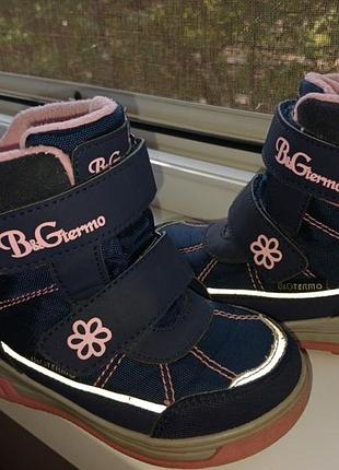 Зимові термо ботінки B&Gtermo р.23 для дівчинки. Стан ідеальний, носки незбиті без подряпин. Збоку та на носках мають світловідбиваючі елементи. Дуже теплі та не об'ємні що дає змогу малюкам вільно рухатися. Довжина устілки 15,0см. Відправлю новою поштою по повній оплаті або наложкою по предоплаті 200 грн. *************