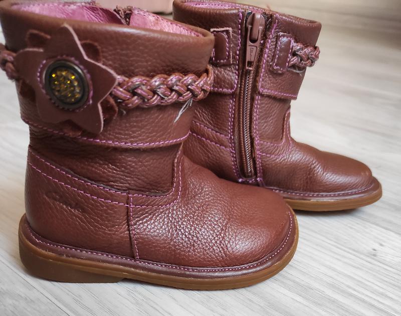 Сапожки Clarks на девочку на осень/весну. Подойдут на худи ножку с невысоким подъемом. Материал: натуральная кожа извне, подкладка внутри из текстиля и стелька из натуральной кожи. Застежка - молния на внутренней части ноги. Длина стельки 14 см. Размер, указанный на подошве 5. Стан хороший. Нюанси: подряпини на носочку лівого черевичка (показано на фото. Отпрашиваю: Безопасная доставка, наложенный платеж с предоплатой 150 грн или полная оплата на карту. Для заказа или дополнительной информации пишите в чат.