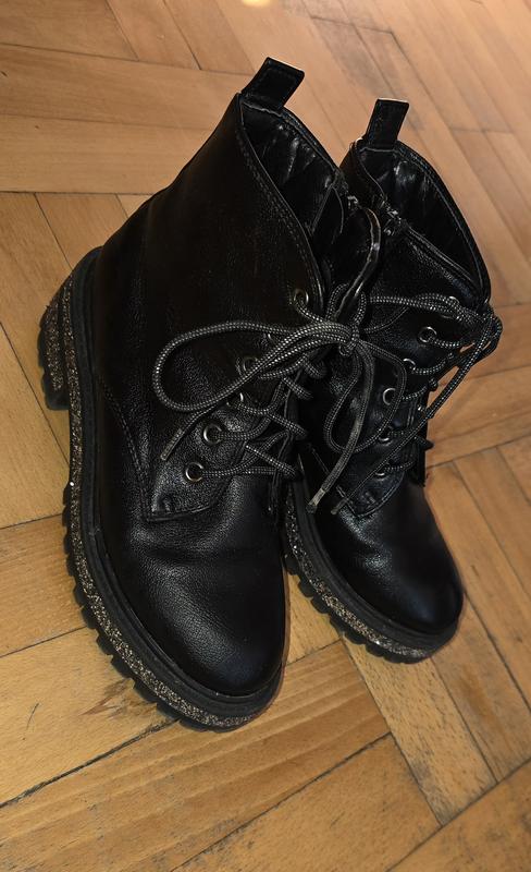 Идеальное состояние, без повреждений, царапин, подошва - идеал, не стирай, кроме небольшой вмятины на левом ботинке-фото есть, в цене учтены. Демисезон, без утепления, плотные, застежка молния и шнурки, на ножке комфортные. Указан размер на 34. Стелька не вынимается, ваши замеры 22-22.5 см