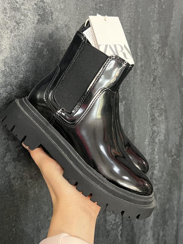 Стильні черевички для дівчат від Zara Верх штучний лак Всередині м'яка устілка Трикотажна та м'яка підкладка Збоку застібка - блискавка Цупка, висока підошва