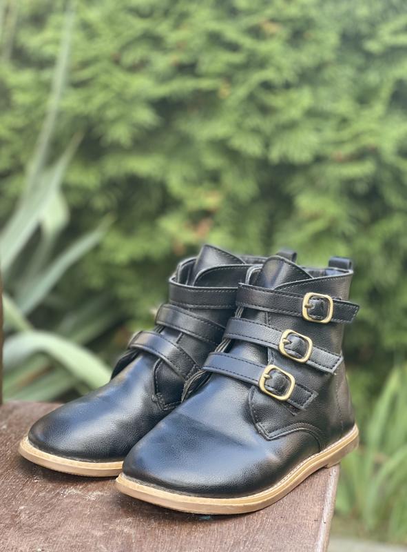 Удобные ботиночки в хорошем состоянии. В середине легкое утепление. Красиво подойдут как к платью так и к джинсам. Застежка на липучках. Размер указан на подошве 36, но маломерят. Длина стельки 21,5см