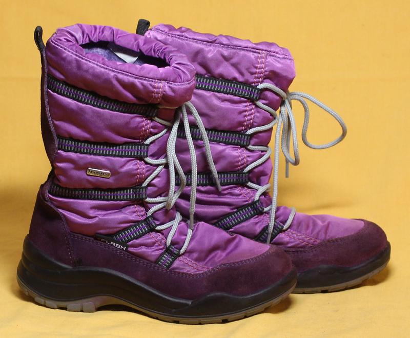 Сапоги Flach Германия Зима Размер 31 Стелька 20.3 см. Верх-натуральная замша,мембрана Sympatex. Цвет- сиреневый. Высота сапога - 21 см. Состояние очень хорошее.