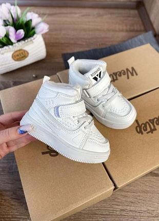 Гарні білі хайтопи. Акуратні та дуже стильні, без зайвих елементів. Спереду на липучці, шнурок-резинка. Матеріал підкладки м'якенький фліс. Устілка шкіряна із супінатором. 750грн 23р. - 15,0см Вимірювання зроблено всередині по устілці особисто мною, похибка 1-2мм допустима.