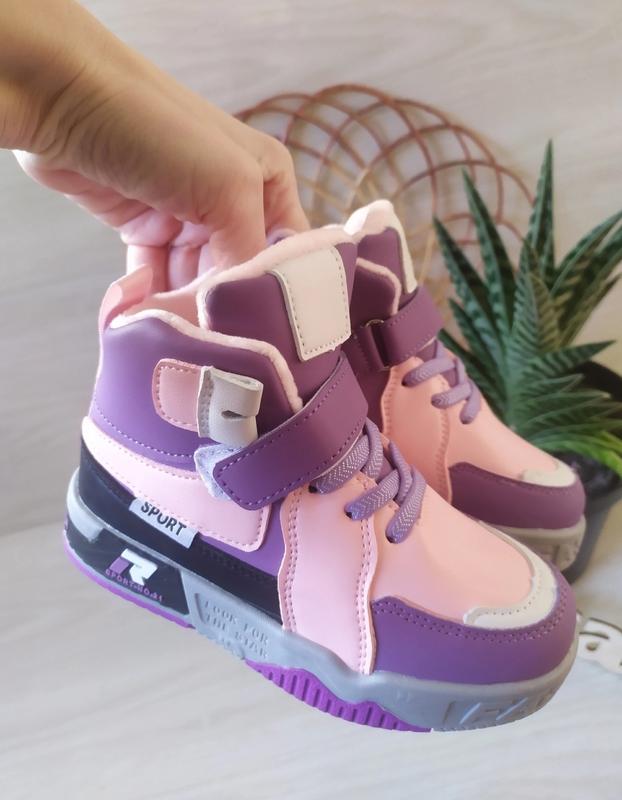 стильные демисезонные хайтопы верх эко кожа внутри на флисе застежка на молнию и липучку, шнуровка резинка красиво держат ножку удобные и легкие замеры внутри обуви р27-17.5см-1шт р28-18см-1шт р29-19см-2шт р30-19.5см-2шт допустимо +-2мм